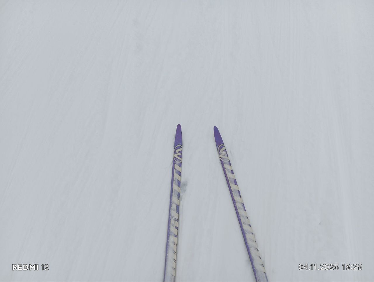 Открыла вчера лыжный сезон. В городе на снег и намёка нет, а в 60 км - по колено. Правда, температура близка к плюсовой, и снег налипает на лыжи и идти неприятно. Когда по прямой или спуск -- ещё нормально, но подъём в гору -- сложно.