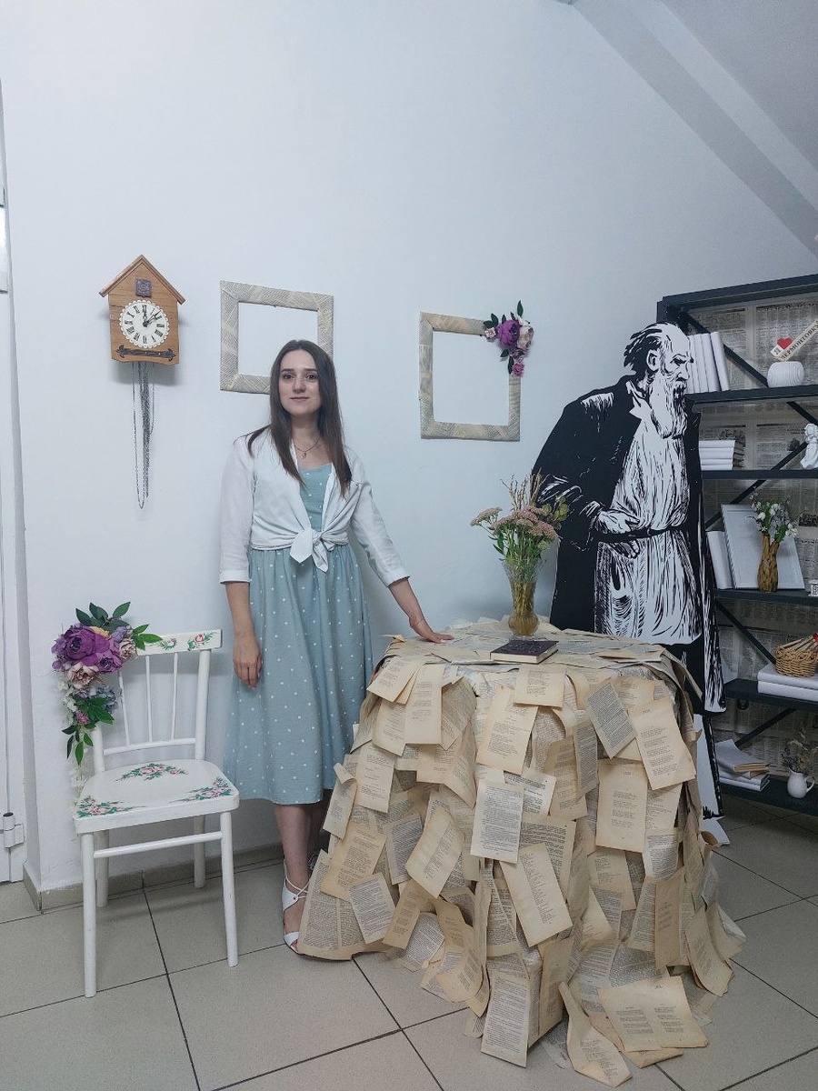 Первый лук — для похода в творческий клуб. Бледно-голубое платье в горошек, а-ля 50-е, поверх — белая рубашка, завязанная узлом. Мило? Безусловно. Но это история про девушку-студентку, которая забежала в библиотеку между парами, а не про корпоративного психолога. Образ слишком юный, наивный. Он транслирует лёгкость, но не глубину. Тактичность — да. Компетентность и доверие — под вопросом.