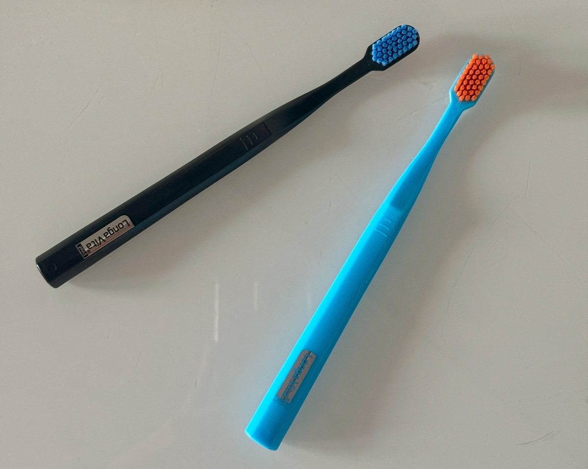 Уже традиционно делюсь с вами практичными и классными покупками, которые уже как следует опробовала и сформировала свое мнение. Вы такие статьи любите, да и я сама тоже! Сегодня получилась максимально полезная подборка, на мой взгляд. Приступим же. Мы пользуемся мягкими зубными щетками и техникой Bass по рекомендации гигиениста. Вы можете ознакомиться с ней в интернете, а также у своего врача. Один из важных моментов — там нужна зубная щетка с мягкой щетиной. В этот раз я решила попробовать щетки Longa Vita, которые давно мариновались у меня в избранном. Брала их в начале октября и спустя месяц никаких нареканий, с первой чистки было понятно, что мы подружимся. По ощущениям, отличный бюджетный вариант Curaprox. У щетки 6580 щетинок, для меня это оптимальное количество. Щетка удобная, хорошо справляется с чисткой, хотелось бы побольше разных цветов (особенно нейтральных). Для себя я заказала голубую с оранжевой щетиной, но в итоге выбрала черную с голубой. Муж не так капризен, ему гл