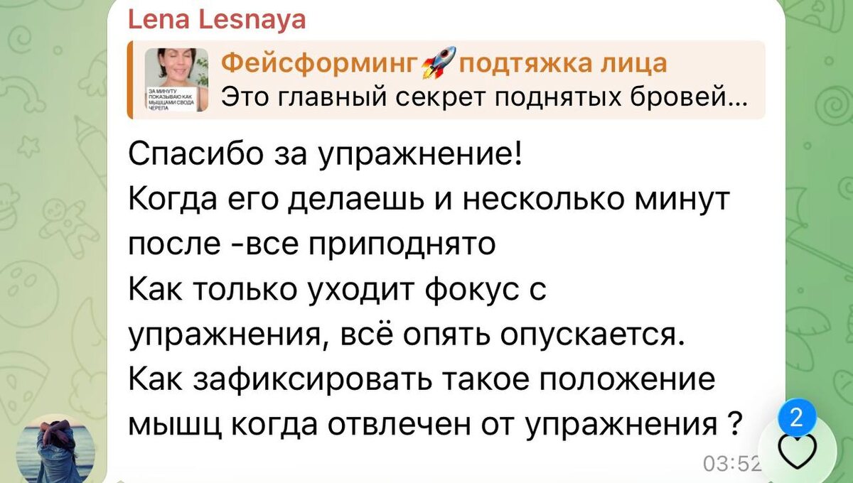 Лена, спасибо за сообщение! Это вопрос регулярной тренировки мышц свода черепа. С каждым днем тонус будет лучше, а откат все меньше. Плюс будет формироваться привычка держать мышцы в тонусе - «быть в шлеме». Просто выполняете в течение дня всегда когда вспомнили и когда комфортно. Старайтесь удерживать лёгкий тонус, когда вы управляете этими мышцами. Главное без фанатизма, чтобы не уходило в напряжение, а ощущали именно приятный тонус и подтяжку.