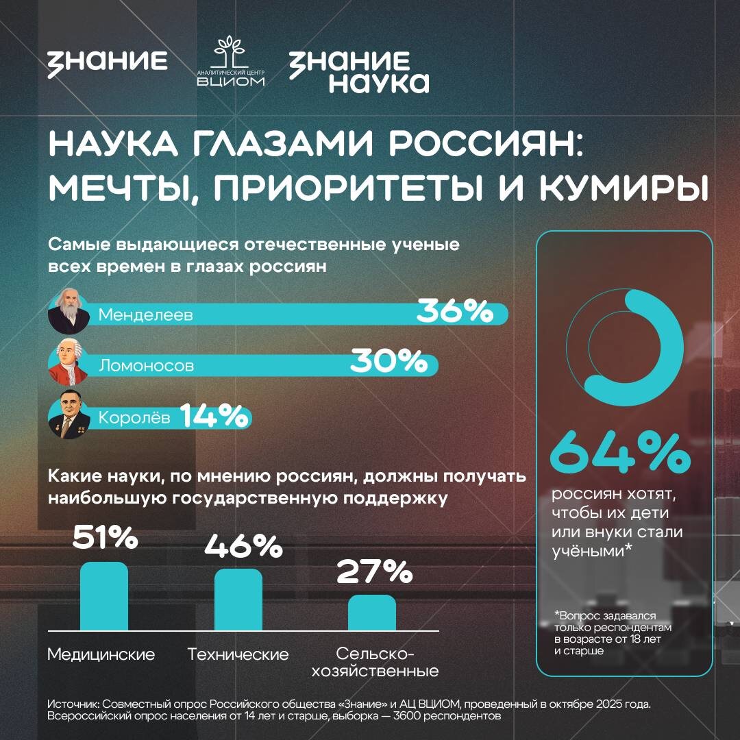 ❤️🔥 Дмитрий Менделеев, Михаил Ломоносов и Сергей Королев стали самыми упоминаемыми учеными среди россиян, следует из совместного опроса Аналитического центра ВЦИОМ и Российского общества "Знание", который есть в распоряжении РИА Новости🇷🇺 🛫 @aidaprepod | #ЕГЭ 📰#новостиобразовани