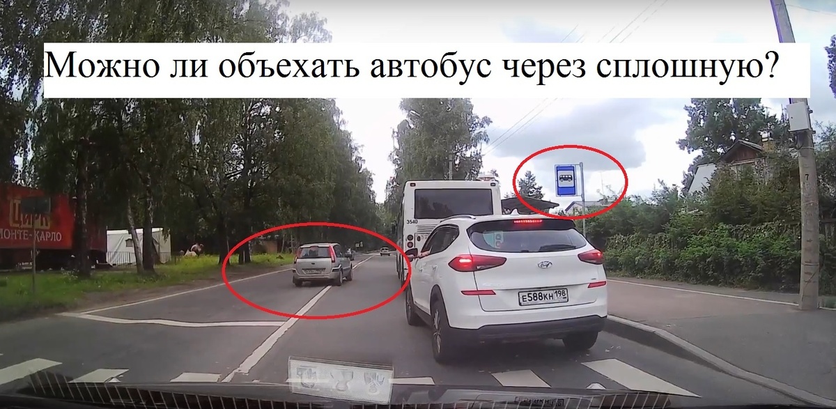 Если вы подъехали к автобусу, остановившемуся на остановке и понимаете, что объехать его без пересечения сплошной линии невозможно, то единственно правильное решение — подождать. В большинстве случаев ожидание длится не более минуты, а затем автобус продолжит движение.