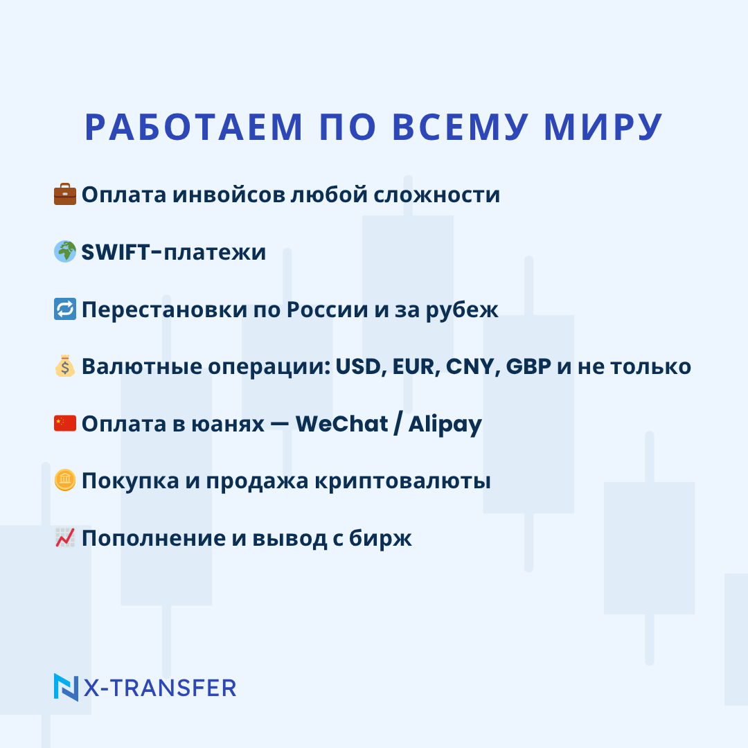 💰 6. Используйте проверенные инструменты для пополнения и вывода. Например, X Transfer — надёжный платёжный партнёр, через который можно безопасно пополнять счёт на бирже и выводить прибыль. Работает с USDT, BTC, ETH и рублями, проходит все AML-проверки и поддерживает международные платформы. Кто-то торгует криптой, кто-то — валютами, кто-то — акциями.