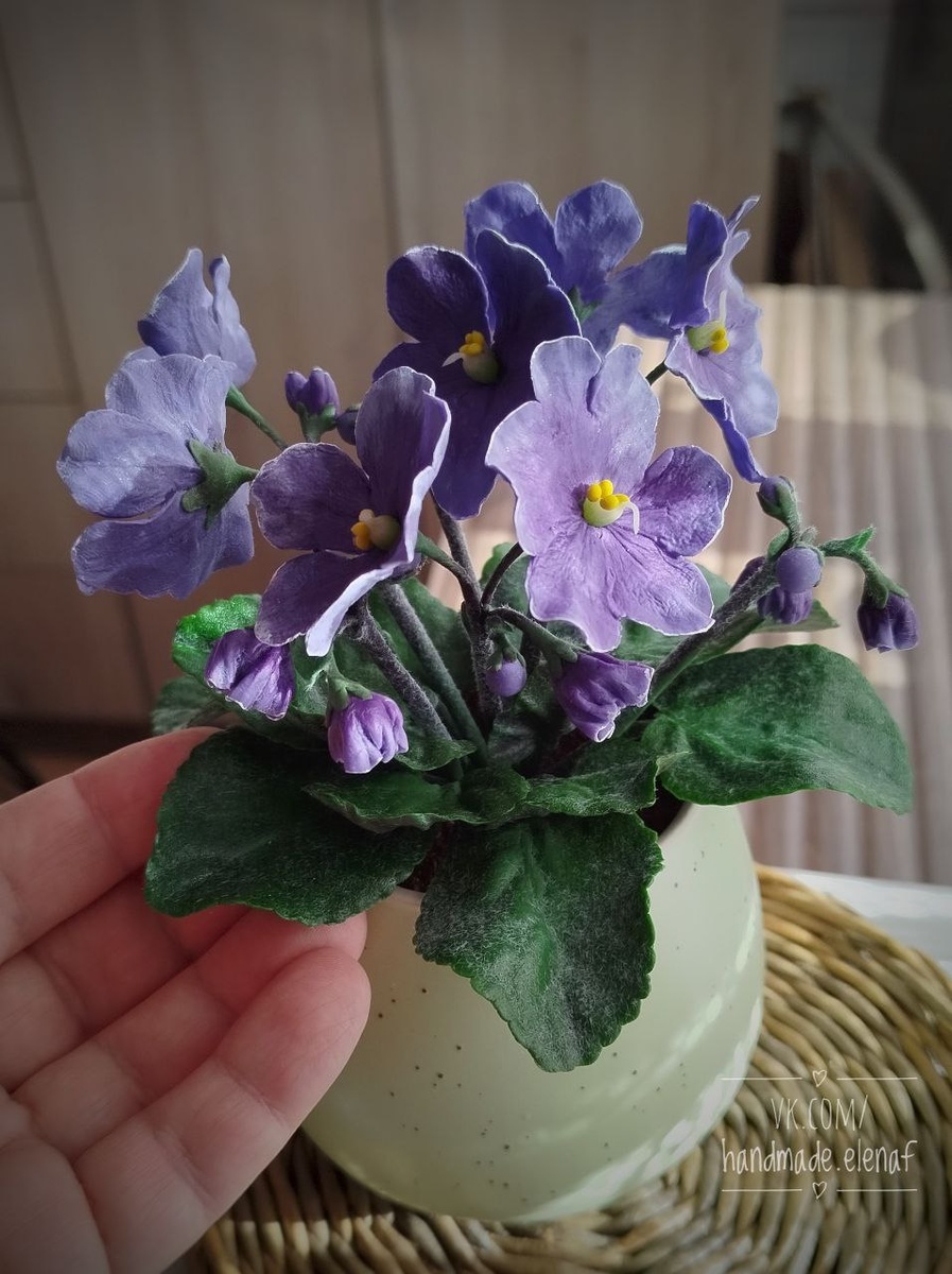 Зафиналила мк от "Цветы из холодного фарфора. Карелина Татьяна" Теперь у меня есть вечноцветущая фиалка 😜 Пополнила творческий багаж интересными нюансиками) #handmade_elenaf #ручнаяработа