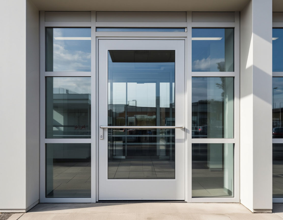 - Решения: алюминиевые двери с закалённым стеклом, автоматические раздвижные системы.