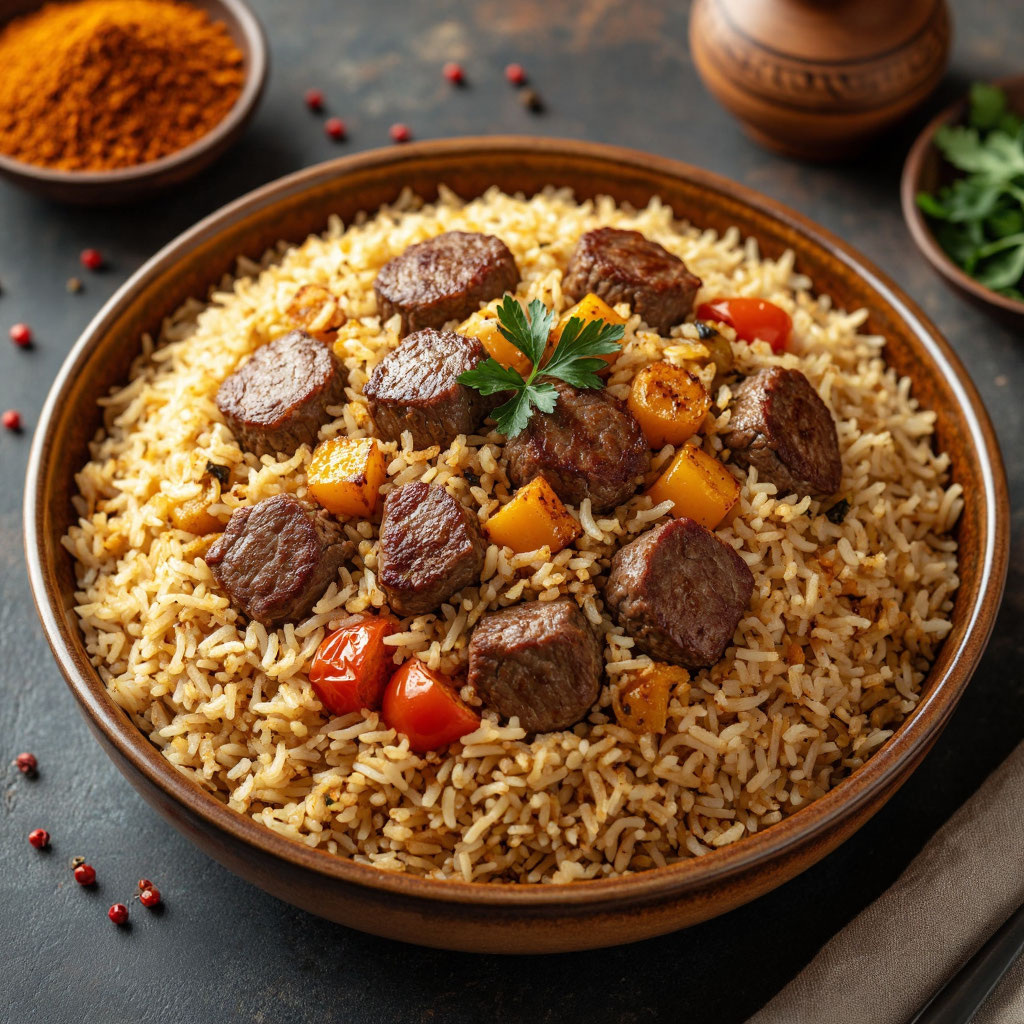 Сытное, насыщенное блюдо с пряным ароматом и рассыпчатым рисом. Классический вариант с восточным характером. Время приготовления: около 2 часов. (примерно): 400–450 ккал на порцию (зависит от количества масла и мяса).