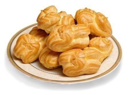 Духовка уже должна быть разогрета до 200 градусов. При помощи двух чайных ложечек выложите на противень шарики на большом расстоянии один от другого. Если есть кондитерский мешок – выдавливайте полоски, тогда заварные пирожные получатся и вкусными, и красивыми. Выпекайте 10 минут, потом убавьте температуру до 180 градусов и подержите еще минут 15 – 20. Когда пирожные немного подрумянятся, достаньте их, дайте остыть. Потом начините кремом.