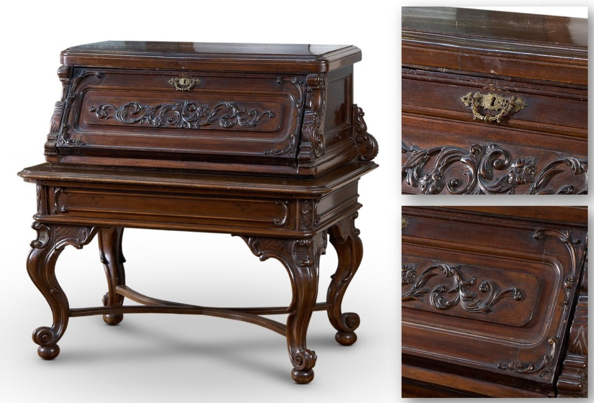 #Пройдемся_по_экспозиции Одним из предметов мебели, который вызывает интерес у посетителей нашего музея, является письменный стол-бюро. Он имеет откидывающуюся крышку над столешницей, скрывающую ячейки для мелких предметов и письменных принадлежностей. Письменный стол-бюро вошел в моду во Франции в конце XVII - начале XVIII веков, где впервые был сконструирован ларец, установленный на изящные ножки. В бюро хранили не только украшения, но и письма. В дальнейшем хранение писем, драгоценностей и секретных документов стало основной функцией этого предмета мебели. Хотите увидеть этот эксклюзивный экспонат и другие интересные предметы мебели - приходите к нам в музей. ▫️▫️▫️ Письменный стол-бюро с откидной крышкой. Западная Европа. Кон. ХIХ в.