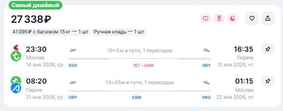 ✈️Москва - Париж (Франция), туда и обратно с пересадками в Стамбуле, за 27350 рублей 14 января - 21 января - https://checkintime.ru/j4k0 🏖 Поиск туров | ✈️Авиабилеты