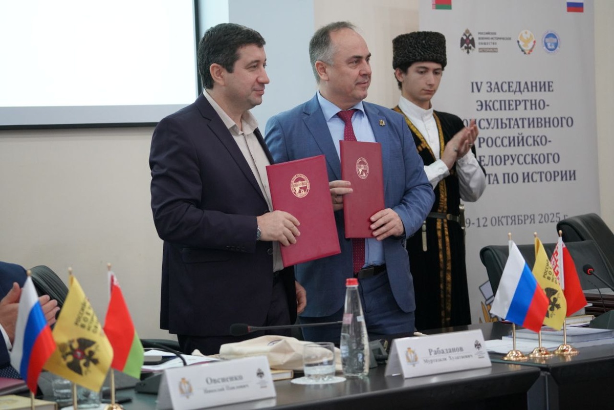 10 октября 2025 года на IV заседании Экспертно-консультативного российско-белорусского совета по истории, которое проходило в г. Махачкале, директор Института истории НАН Беларуси В.Л. Лакиза и заместитель директора по научной работе Дагестанского федерального исследовательского центра РАН А.Б. Биарсланов подписали Соглашение о сотрудничестве во всех областях, представляющих взамный интерес. ⛳️ В библиотеку Института истории, археологии и этнографии, который входит в состав указанного Центра, были переданы издания ученых Института истории НАН Беларуси.