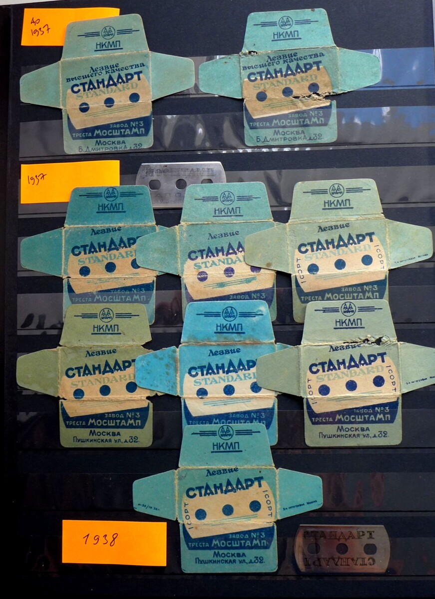 Глубокой осенью 1931 года на смену треста "Мостремасс" пришёл "Мосштамп". Бритвенные лезвия "Стандарт" завода № 3 "Мосштамп" впервые появились в продаже в начале 1932 года, на верхнем клапане конвертика был изображён промежуточный вариант торгового знака треста. Поначалу, судя по молчанию московской прессы, особых претензий к ним не было, если не считать общественный "Суд над Мосштампом", инициированный в 1933 году "смотрящим" от "Центросоюза" Михаилом Вулем, и безобидную сатиру в "Вечерней Москве". Официальный торговый знак треста "Мосштамп" с большой и широкой буквой "м" появился на конвертиках в 1933 году. Но уже в 1935 году в главной газете коммунистов "Правда" появилась статья, вопрошающая "Почему бритва тупая?". Корреспонденту "Правды" невдомёк, что несмотря на то что "фабрики рабочим", заводы не имеют никаких прав на внешнеэкономическую деятельностью, с 1918 года это монополия Наркомата внешней торговли. В 1937 на лезвия "Стандарт" обрушилась уже газета "Московский большевик".