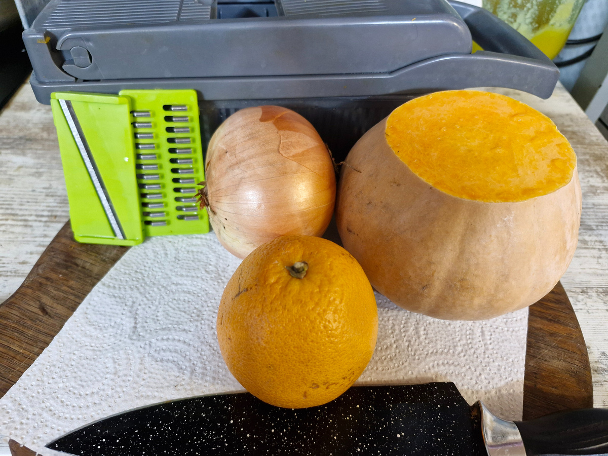 Увидела у Светланы этот занимательный салат. Он и правда в голову не придёт так сразу. И подумаешь, кто его такой придумал? Ну не очень совместимые продукты. Как та каша из топора. Возьми тыкву и лук с апельсином. Ага. Вот они. Я тут расстаралась на составление натюрмотра. У Светланы всегда очень хорошие фотографии. Художественные, с изюминкой. Ну вот что вышло)))) Тыкву я натерла с насадкой для корейской моркови. Лук на насадке слайсер. Лук маринуется в апельсине. Я апельсин просто почистила и нарезала на кружочки ножом. Смешала с луком. Лук шинкуется на насадке тончайшими перышками. Потом смешала все с тыквой. Посолила и смазала двумя полными с горкой столовыми ложками домашнего майонеза. У меня майонез остался от жареных кабачков, которые делала ранее и писала про которые. Он получился острым, потому что делала его с аджикой. Результат получился интересным. В самом деле очень сложно понять, что это тыква. Салат свежий, с остринкой от лука. У меня еще и от майонеза. О