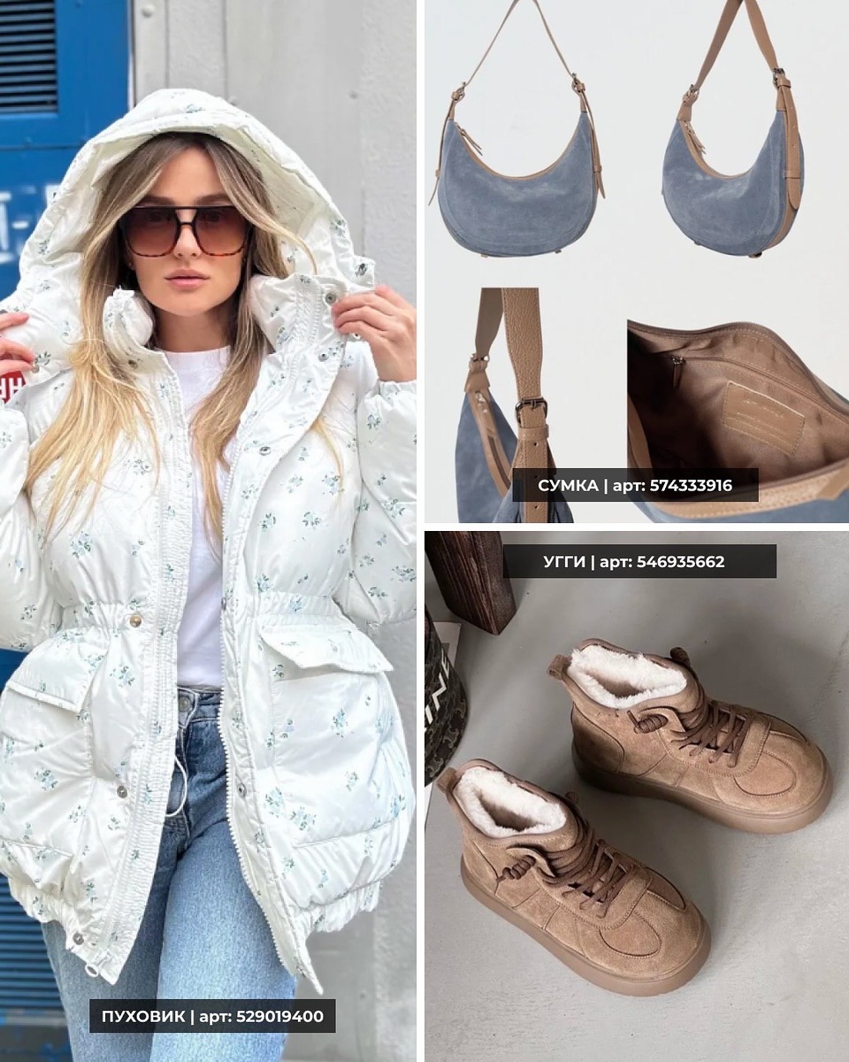 Все эти вещи с вайлдберриз — не просто случайный набор, а готовые элементы капсульного зимнего гардероба. Белый пуховик с цветочным принтом создаёт романтичное настроение, сумка и угги добавляют уюта и практичности. Шоколадное пальто, красные перчатки и классические сапоги формируют элегантный городской образ. А молочная куртка с бордовыми акцентами, перчатки и ботильоны в тон — выбор для тех, кто любит современный, уверенный стиль.