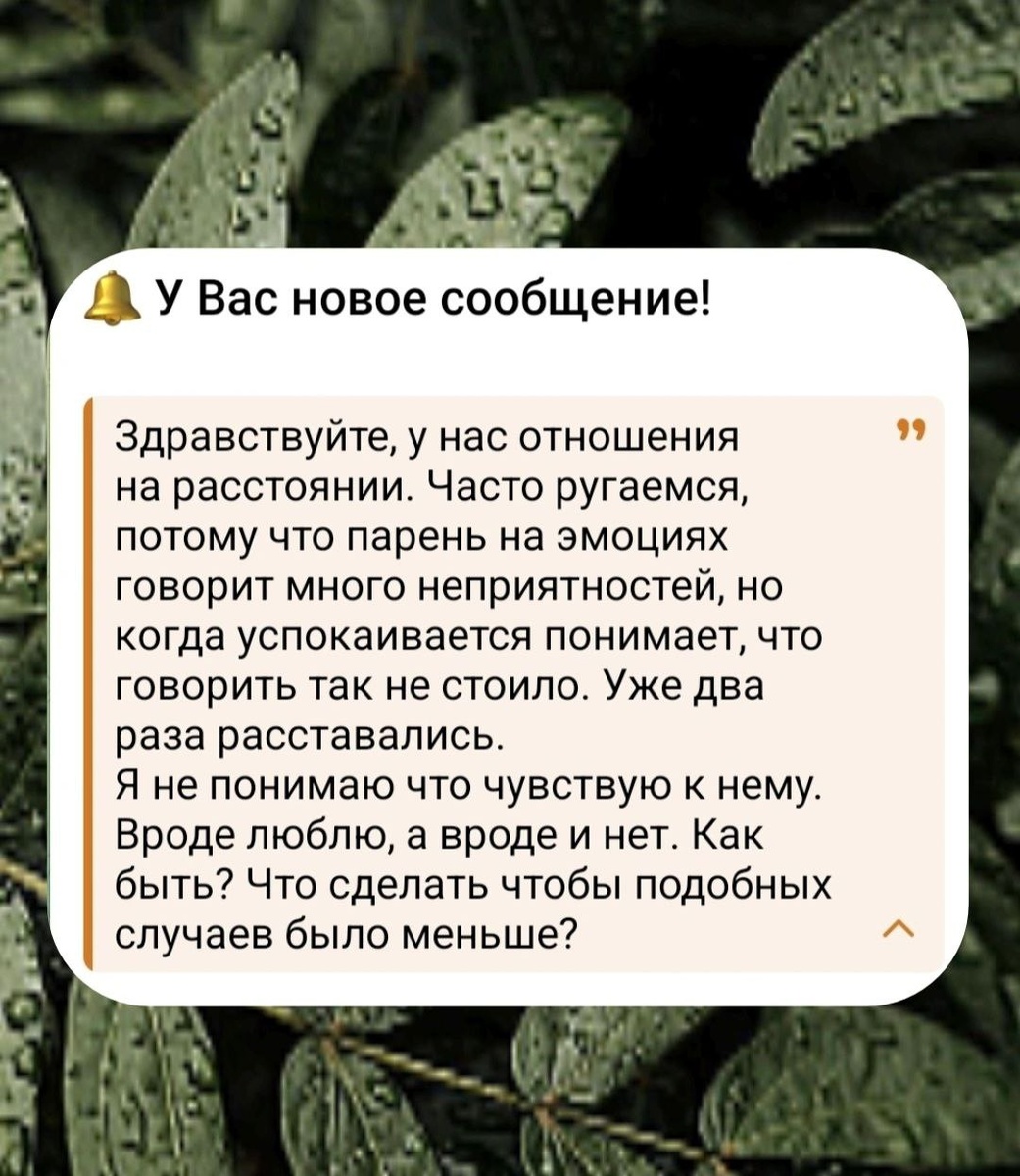 Чтобы уменьшить количество конфликтов, важно понять зачем вам эти отношения, что они закрывают и почему вы остаетесь в них несмотря на боль? 🤩Отношения на расстоянии всегда усиливают эмоции, потому что мало телесного контакта, меньше спокойных бытовых моментов, а потребность в близости остается прежней. Поэтому любые слова, сказанные на эмоциях, ранят сильнее. Чтобы вам стало легче понимать себя и налаживать коммуникацию, важно задать себе несколько честных вопросов: 🤩А что значит для вас отношения на расстоянии? 🤩Почему вы выбираете отношения именно с этим человеком? 🤩Что ценного вы получаете в этой связи 🤩Какие ваши потребности эти отношения закрывают 🤩Что вы хотите сделать дальше: наладить эти отношения, расстаться, выстроить новую форму общения Когда вы понимаете для чего вам эти отношения и какую роль они занимают в вашей жизни, становится проще выстраивать границы и не попадать в эмоциональные качели. Есть еще второй важный слой. Почему вы позволяете ему говорить с вам