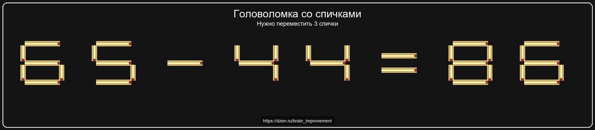 Время для мозгового штурма! 🌪️ В этой головоломке нужно переместить 3 спички для правильного ответа! 🎲