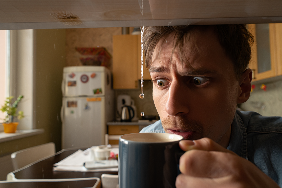 Вода всегда приходит тихо. Сначала — как будто капает внутри головы. Ты думаешь: послышалось. Потом — на подоконнике появляются ровные холодные капли, как чужие слёзы. И вдруг — мокрое пятно в углу потолка расползается, как разбитая чашка кофе. Так началось утро, которое я теперь называю «день большого потопа». Я стоял посреди кухни в домашних шортах, держа кружку кофе и ощущая, как капля воды падает в мой напиток. Кофе стал солоноватым. Вода свисала с выключателя, по стене бежали маленькие прозрачные дорожки. — Только не сейчас… — выдохнул я. Жена выглянула из спальни, сонная, волосы растрёпанные: — Это дождь? — Это соседи, — сказал я. — Или ад. Я поднялся на этаж выше. Постучал. Тишина. Ещё раз. Тишина. Дверь открылась резко, как будто там стояли и слушали. Соседка — молодая женщина, яркие ногти, усталые глаза. Позади — мужчина, в спортивных штанах, с лицом «всё знаю, но молчать не буду». — Вы нас заливаете, — сказал он уверенно. — Это вы нас заливаете, — сказал я и показал фото сво