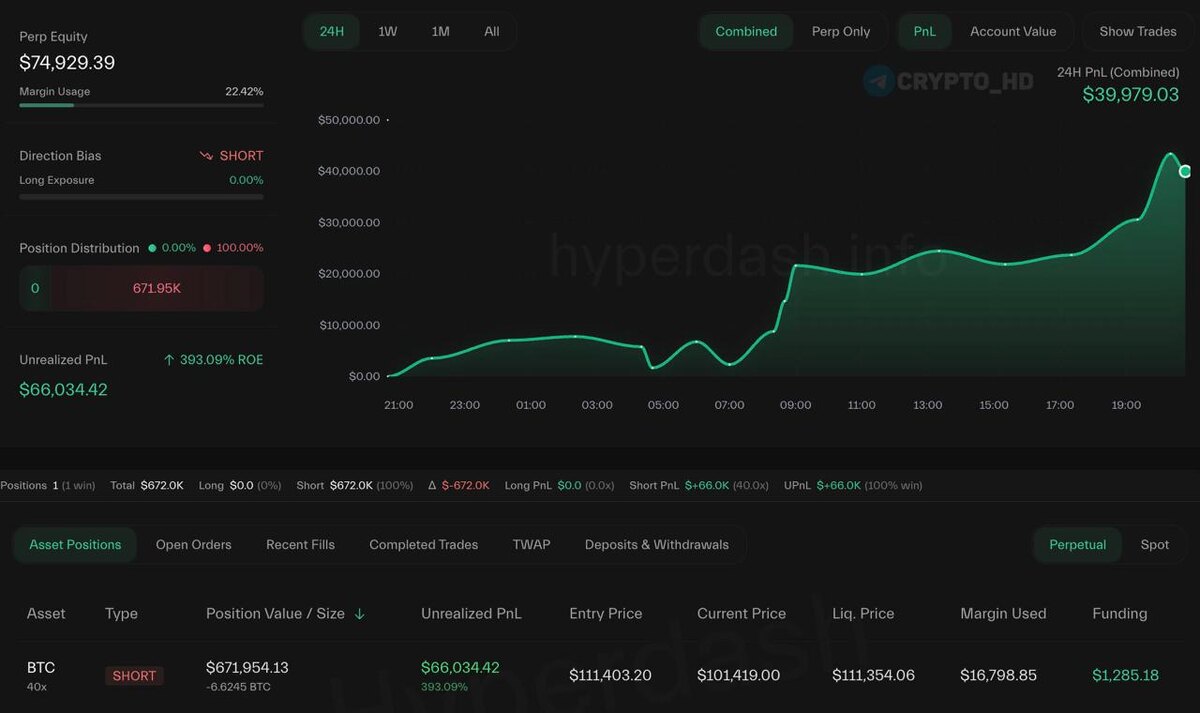 🍸 Неудачливый Джеймс Уинн пытается хоть немного заработать на сегодняшнем снижении – открыл шорт по BTC с 40х плечом. Cryptо Headlines