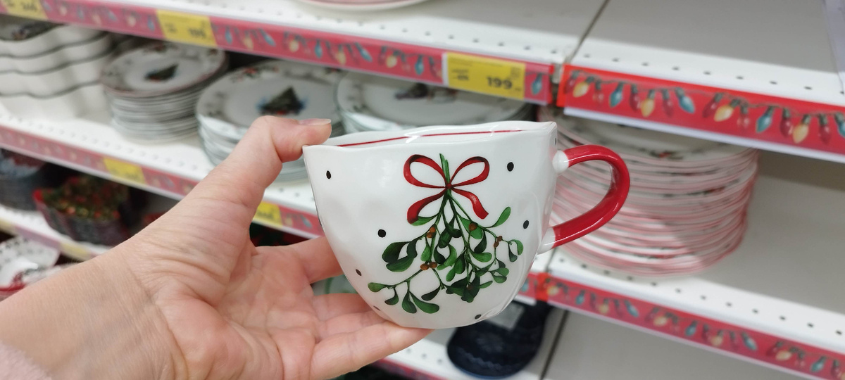 Всем моим читателям огромный привет из солнечного Краснодара! У нас очень тёплая, солнечная погода и даже не верится, что скоро Новый год и первые зимние месяцы. Но несмотря на это все магазины у нас забиты уже с середины октября новогодним декором и волей не волей хочется купить что-то нового для украшения своего дома. Вот и в гипермаркете Магнит отличный ассортимент новогоднего декора и новогодней посуды. Из посуды представлены различные сервировочные блюда, формы для запекания, бокалы из цветного стекла, тарелки, кружки и многое другое. Вот как раз кружки я и хотела вам показать. У нас дома очень много кружек и порой даже не хватает места, чтобы их все составить вместе в сушильном шкафу, но несмотря на это я всё равно присматриваю интересные экземпляры. Все кружки, которые сегодня покажу изготовлены из фарфора и объем кружек 400мл. Первая кружечка с красной лентой очень изящная, праздничная, я бы даже сказала классическая. Вот этот вариант на мой взгляд уже более оригинальный