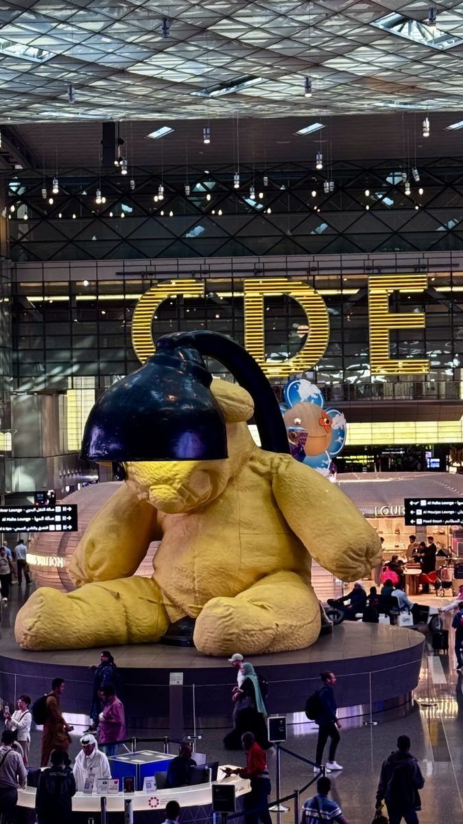 Международный аэропорт Хамад ✈️ Рекомендую прибыть в аэропорт заранее перед вылетом домой. Прогулка по аэропорту поможет поднять вам настроение перед тем, как вы покинете Катар. На территории расположено множество арт-объектов, создающих впечатление, что вы находитесь на выставке. На территории представлено более 180 магазинов, от сувенирных лавок до эксклюзивных бутиков, а также множество точек питания — от фастфуда до ресторанов высокой кухни. Магазины здесь можно назвать отдельным видом искусства. И самое интересное — это комплекс оформлений в стиле оазиса с элементами, ассоциирующимися с водой. Здания украшены волнистыми крышами и вечнозелёными садами, что создаёт атмосферу умиротворения и гармонии с природой. Как же найти этот комплекс?! Снимки выходят очень яркими и насыщенными. И здесь вы тоже найдете арт-объекты.