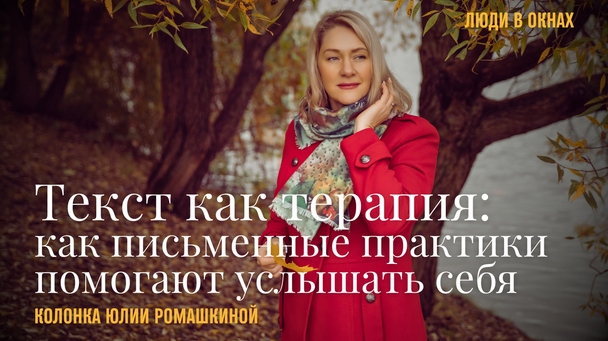 Редакция «Люди в окнах» благодарит Юлию Ромашкину за то, что открыла этот удивительный мир текстовой терапии. Оказывается, у привычного нам текста есть еще одна грань: он может быть не только инструментом для общения или творчества, но и мощным средством самопомощи, мостом к самому себе. И если вы хотите исследовать эту возможность вместе со специалистом, Юлия будет рада стать вашим проводником на этом пути.