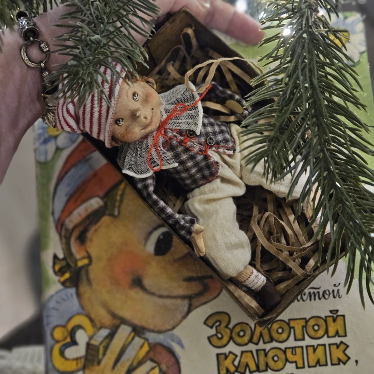 Подвижная кукла Буратино. Приедет в подарочной коробке с подарками. 12тр