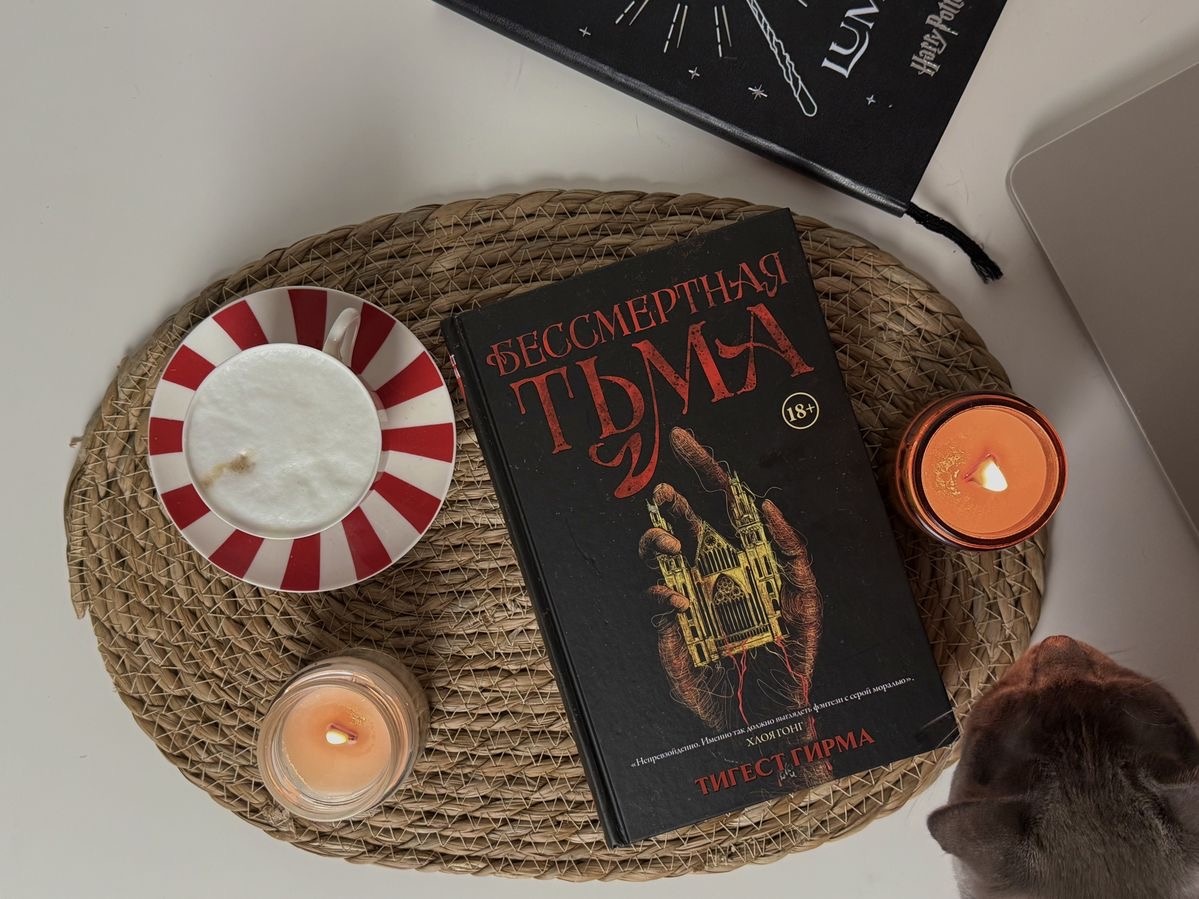 Откровенно: лучшая книга прямо сейчас — «Бессмертная тьма» «Бессмертная тьма» — это потрясающая книга, которая сразу захватила меня с первых страниц. Обычно мне нужно время, чтобы вникнуть в сюжет и персонажей, но здесь всё было настолько увлекательно и атмосферно, что я прочла с восторгом от начала до конца. Мир тёмной фантастики, глубокие эмоции и оригинальная мифология сделали её моей любимой на данный момент. Жду с нетерпением продолжения — вторая книга пока ещё не переведена на русский язык.