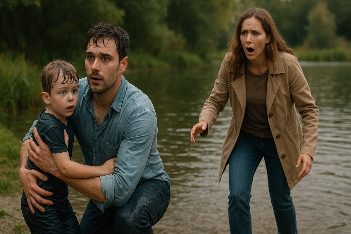 У детской площадки раздался крик. Женщина звала на помощь. Михаил резко отвернул руль и остановился, увидев в пруду маленького мальчика, который захлебывался, пытаясь выбраться.