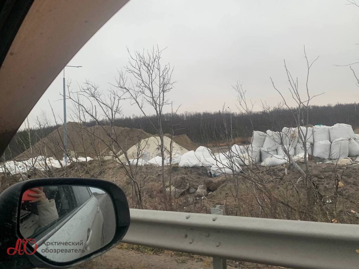А на технической площадке УДХ (улица Планерная, выезда на «ленинградку») – во всю идёт подготовка пескосоляной смеси, которую совсем скоро булут высыпать на улицы Мурманска. Обратите внимание, что соль здесь уже вывалена из мешков и собрана в кучу.