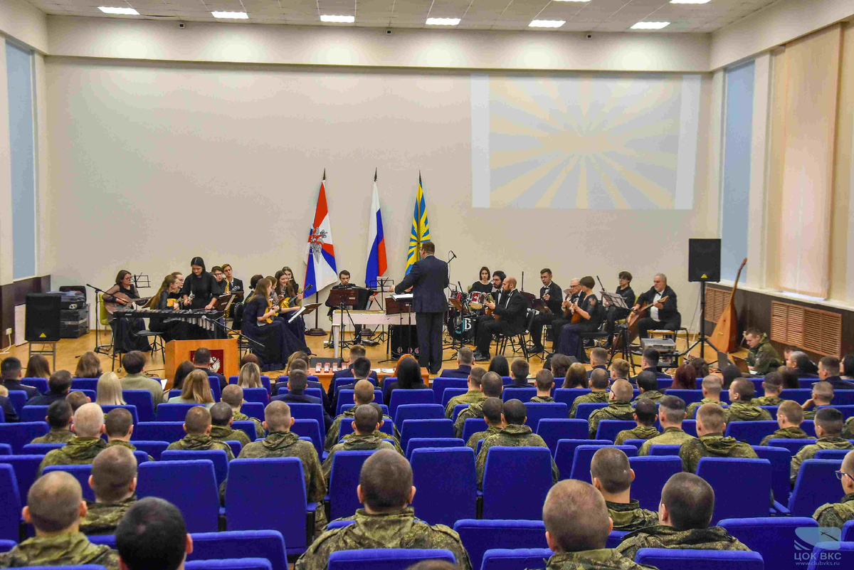02.11.2025 г. В рамках празднования Дня народного единства творческая группа Центрального офицерского клуба Воздушно-космических сил представила в клубе воинской части подмосковной Балашихи праздничную программу «Мы-народ большой страны!». Зрителями концерта стали ветераны военной службы, военнослужащие ВКС и члены их семей. В концертной программе приняли участие артисты Академического оркестра русских народных инструментов Радио и Телевидения Автономной Некоммерческой Организации “Центр поддержки и развития академического народного творчества” (художественное руководство: заслуженный артист России Гариф Ахметов, Дирижёр – Антон Седов) солисты Вера Жемчужная и Сергей Лашманов. В завершении концерта артистов поблагодарили от имени командования воинской части за прекрасный концерт и вручили им цветы и благодарственные письма. Стоит отметить, что эта концертная программа стала одним из многочисленных мероприятий, организованных Центральным офицерским клубом ВКС при поддержке Главного кома