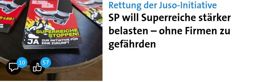ΠΎΠ΄ΠΈΡ? π ΠΠΎΡΡΠ΅Π΄ΠΈ ΠΊΠ°ΠΌΠΏΠ°Π½ΠΈΠΈ ΠΏΠΎ Π³ΠΎΠ»ΠΎΡΠΎΠ²Π°Π½ΠΈΡ ΠΏΠΎ ΠΈΠ½ΠΈΡΠΈΠ°ΡΠΈΠ²Π΅ Juso ΠΎ Π½Π°ΡΠ»Π΅Π΄ΡΡΠ²Π΅Π½Π½ΠΎΠΌ Π½Π°Π»ΠΎΠ³Π΅ ΡΡΠΊΠΎΠ²ΠΎΠ΄ΠΈΡΠ΅Π»ΠΈ ΡΡΠ°ΠΊΡΠΈΠΈ SP ΠΏΡΠ΅Π΄ΡΡΠ°Π²ΠΈΠ»ΠΈ ΠΊΠΎΠ½ΡΠ΅ΠΏΡ, ΠΏΠΎΠΊΠ°Π·ΡΠ²Π°ΡΡΠΈΠΉ: Π½Π°Π»ΠΎΠ³ Π½Π° ΠΊΡΡΠΏΠ½ΡΠ΅ Π½Π°ΡΠ»Π΅Π΄ΡΡΠ²Π° Π²ΠΎΠ·ΠΌΠΎΠΆΠ΅Π½, Π½Π΅ Π½Π°Π½ΠΎΡΡ ΡΡΠ΅ΡΠ±Π° ΡΠ΅ΠΌΠ΅ΠΉΠ½ΡΠΌ ΠΏΡΠ΅Π΄ΠΏΡΠΈΡΡΠΈΡΠΌ. Π‘ΠΎΠ³Π»Π°ΡΠ½ΠΎ Π³Π°Π·Π΅ΡΠ΅ SonntagsZeitung, ΠΏΠ°ΡΡΠΈΡ Ρ