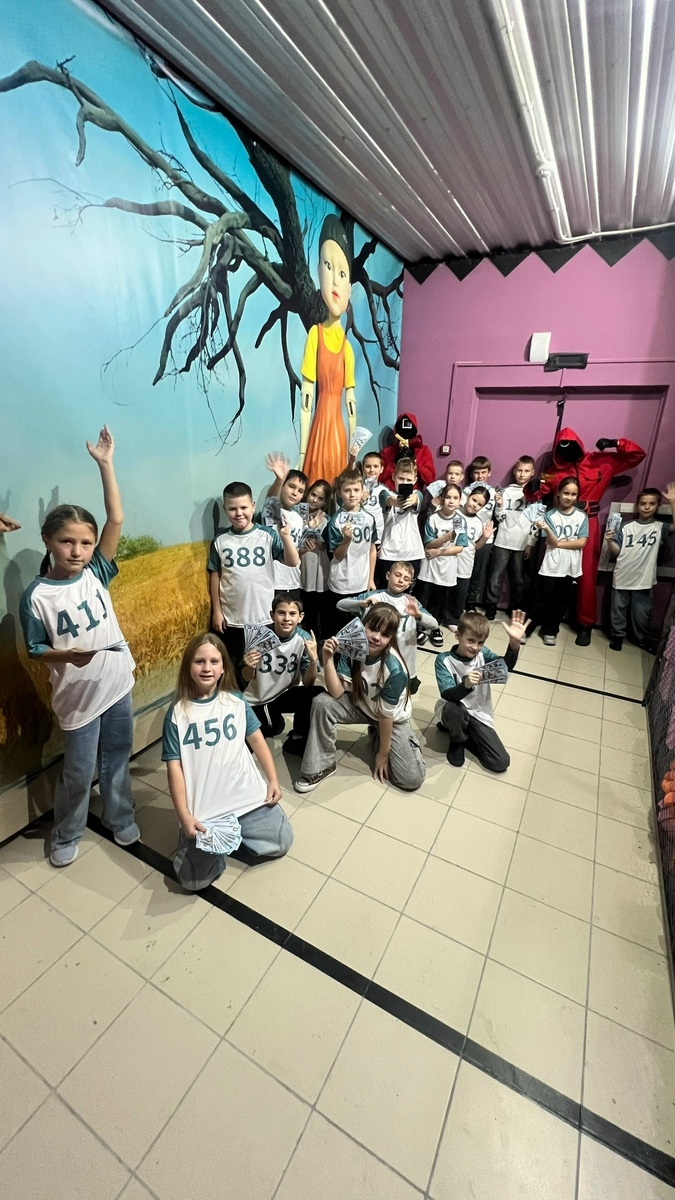 ✏️ Квесты в Тихорецке | Дни рождения | Маршал: Последние деньки осенних каникул висели на календаре грустными листочками. 3Б, то есть наш 3 «Б» класс, чувствовал это всеми фибрами душ. Завтра – снова ранние подъемы, уроки и домашние задания. Но сдаваться без боя мы не собирались! Решили устроить прощальный взрыв – поход в квест-арену «Игры в Кальмара». Встретились у входа. Все как на подбор: в удобных футболках, готовые к подвигу. Внутри нас встретили люди в красном костюме и маске, как в том самом сериале. «Добро пожаловать на Игры!» – сказал он ледяным голосом, и у нас по спине пробежали мурашки. Нас разделили на две команды, и началось! Первый вызов: «Красный свет, зеленый свет». Нужно было преодолеть зал, пока на экране горел зеленый свет. Как только загорался красный – замирать. Саша чуть не проиграл, чихнув в самый неподходящий момент, но удержался, зажав нос. Было и страшно, и смешно одновременно! Второй вызов: «Мостик из стекла». Нужно было выбрать правильный путь, шагая т