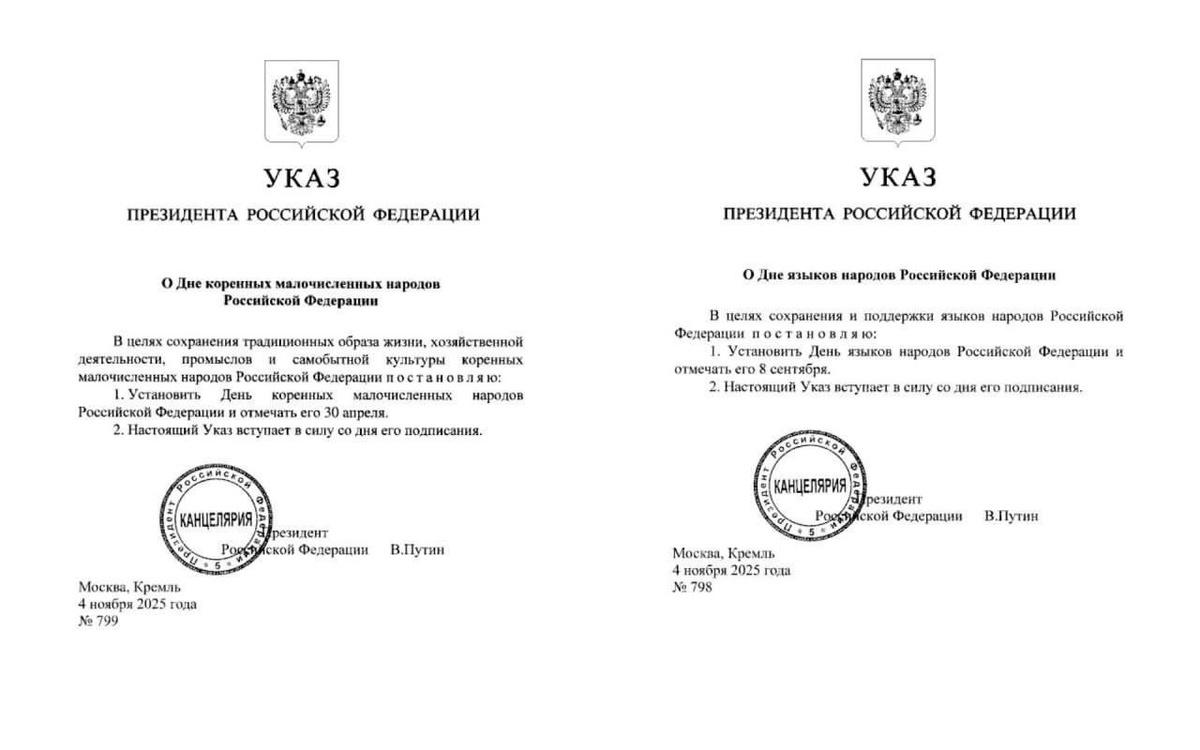 🇷🇺 Владимир Путин учредил два новых памятных дня Президент России Владимир Путин подписал указы об установлении Дня коренных малочисленных народов Российской Федерации и Дня языков народов России. 📅 Эти даты станут важными символами сохранения культурного наследия, традиций и языкового многообразия страны. Новые памятные дни подчеркнут роль коренных народов в истории и развитии России, а также поддержат инициативы по защите уникальных языков и культур. 🧡 Решение особенно значимо для арктических и северных регионов, где проживает большинство представителей КМНС — хранителей древних традиций, языка и гармоничного взаимодействия человека с природой. С любовью к Арктике, @arctica_online
