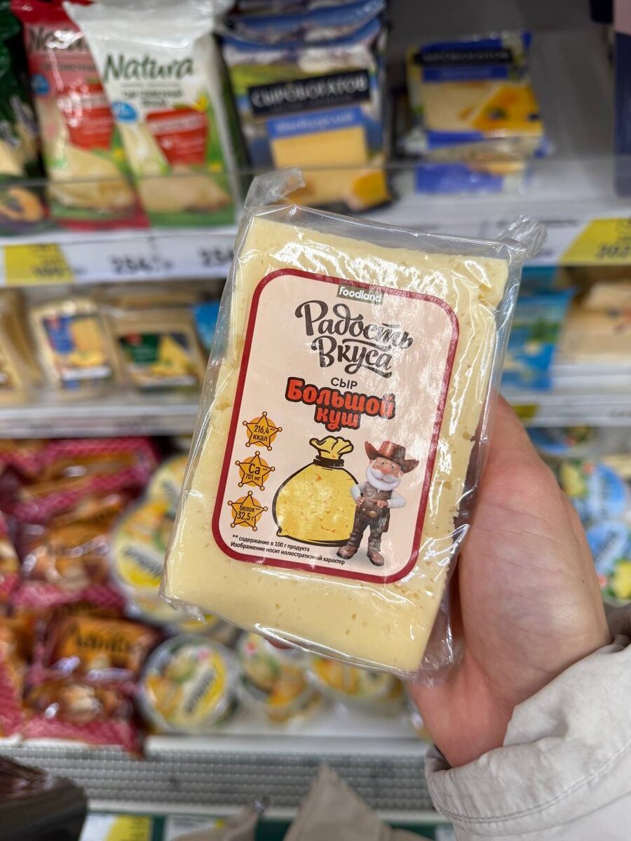 Меня все не отпускает сырно-протеиновая тема 😆 Зашла после тренировки в магазин сегодня, а там, видимо, поставка сыров была, потому что ассортимент разорвал мое воображение. Конечно, слово PROTEIN не может не привлечь внимание человека после зала. Честное слово, ручка сама к нему потянулась. Выглядит прикольно, да. Но есть нюанс. "Радость вкуса" на первом фото. На 100г: 216.4 ккал, 32.5 г белка, 9.5 г жира. 164р за 180г. Протеиновый сыр на втором фото. На 100г: 263ккал, 32г белка, 15г жира. 299р за 200г. Во-первых, смешно, что в протеиновом сыре белка на 0.5г меньше. Это не существенно, но забавно. Во-вторых, первый вариант очевидно выигрывает по жирам и калорийности. В-третьих, протеиновый сыр при этом почти в два раза дороже стоит. Обращайте внимание на этикетки на обороте, короче, а не на красивые стрелочки и обещания производителей. "Радость вкуса" именно этот мне как-то посоветовали в комментариях, кстати, и мы реально теперь его берем почти всегда. Хороший сыр, обратите в