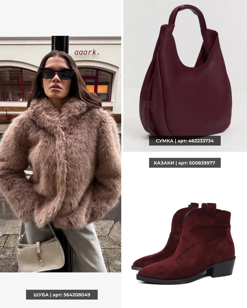 Когда на улице серо и сыро, особенно хочется закутаться во что-то мягкое, тёплое и при этом не терять ощущение собственого стиля. На коллажах — как раз такие вещи: шубы цвета капучино, шоколадные пальто, сумки глубокого оттенка вина и лаконичная обувь на удобном каблуке. Всё это — реальные находки с вайлдберриз, которые легко вписать в городской гардероб и сочетать между собой.