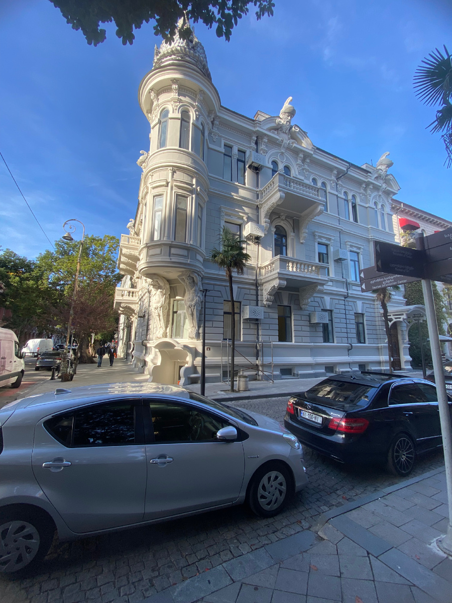 Строительство здания было начато в 1896 году купцом второй гильдии Николаем Антоновичем Сабаевым (Сабашвили) после приобретения им земельного участка на углу улиц Дондуко-Корсаковской и Мариинской. В 1899 году на месте ветхого строения был возведен добротный двухэтажный каменный дом. К 1903 году в здании разместились частная торговая контора и редакция газеты, располагавшиеся на первом этаже. В это время из Кутаиси в Батуми прибывает молодой скульптор Серафим Пололикашвили. Именно он в последствии и станет автором монументальных атлантов под угловой башней с куполом. После окончания Кутаисской гимназии, будучи в поисках средств к существованию, Пололикашвили работал моряком. Впоследствии он получил образование в Одесской академии художеств. Возвратившись в Грузию, Пололикашвили в 1897 году был упомянут в газете «Цнобис пурцели» в связи с его талантом и нуждами: «В настоящее время в Грузии пребывает молодой грузинский художник и скульптор Серафим Пололикашвили, получивший образова