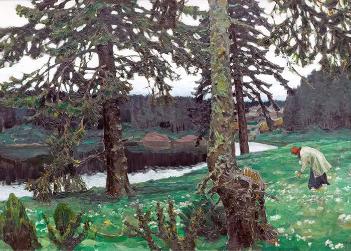 Я стою в тени дубов священных, Страж твоих угодий сокровенных, Кормчая серебряных путей! И влачит по заводям озерным Белый челн, плывущий в небе черном, Тусклый плен божественных сетей. И влачатся, роясь под скалами, Змеи-волны белыми узлами; И в крылатых просветах ветвей, Дея чары и смыкая круги, Ты на звенья кованой кольчуги Сыплешь кольца девственных кудрей. Так я жду, святынь твоих придверник, В эту ночь придет ли мой соперник, Чистая, стяжавший ветвь твою, Золотой добычей торжествуя, Избранный, от чьей руки паду я, Кто мой скиптр и меч возьмет в бою. Обречен ли бранник твой, Диана, Новой кровью жадный дерн кургана Окропить и в битве одолеть? И сойдешь ты вновь, в одеждах белых, На устах пришельца омертвелых Поцелуй небес напечатлеть. И доколь, кто тайн твоих достоин, Не придет, я буду, верный воин, Жрец и жертва, лунный храм стеречь, Вещих листьев слушать легкий лепет И ловить твоих касаний трепет, Льющихся на мой отсветный меч. Вячеслав Иванович Иванов, 1903 год Источник