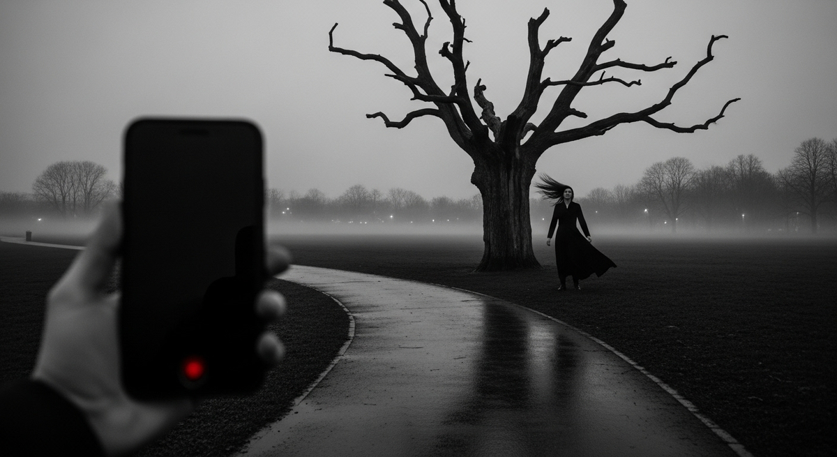 Всё ещё то же мёртвое дерево, пасмурное небо. Всё выглядело точно так же… кроме человека. Он больше не стоял у дерева. Он сделал несколько шагов навстречу фотографу.