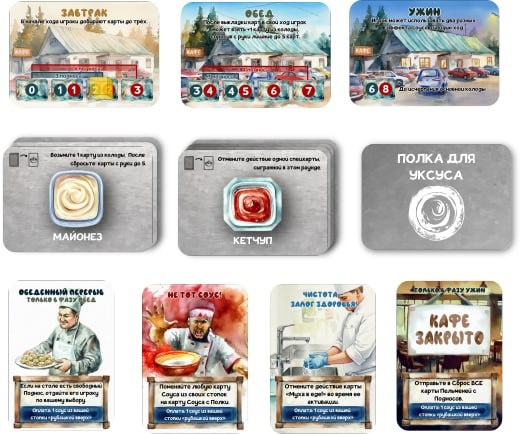 Завтра в группе Тестировщики СИМПЛРОБОТ запускаем тест игры Пельнянь 2.0. Это те же "пельмешки", но с измененным балансом и соусами не только как источником очков, но и ресурсами для спецкарт и эффектов. А еще три режимы работа кафе, которые также влияют на правила игры. Соло-режим также присутствует.