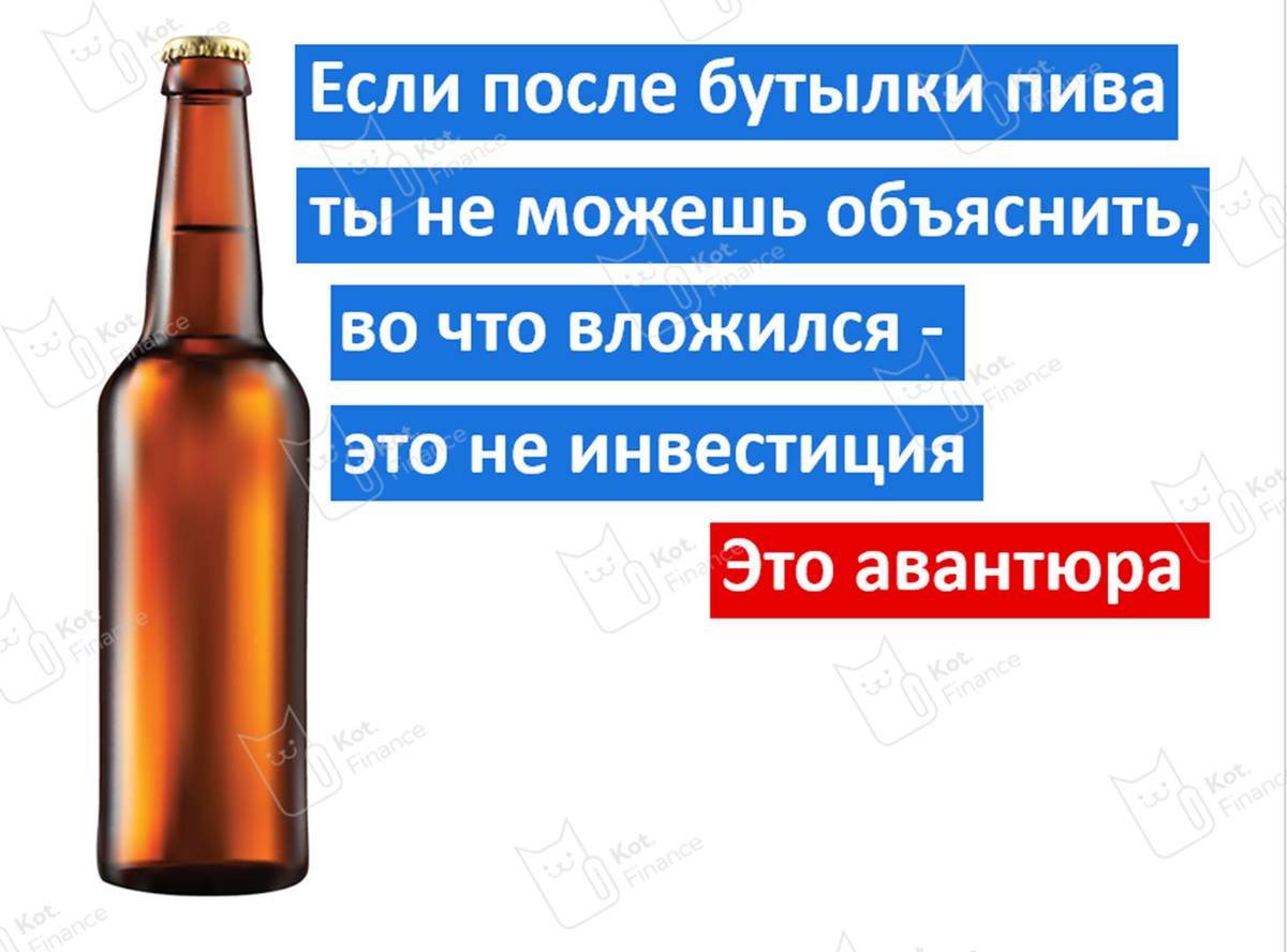 Инвестиция должна быть не сложнее пива: хмель, солод, вода 👉 больше инвестиционного юмора тут, хештег #юмор Улыбнулся? Ставь👍 -- Спасибо, что читаете нас❤ 👉Витрина ссылок. Читайте нас там, где Вам удобно!