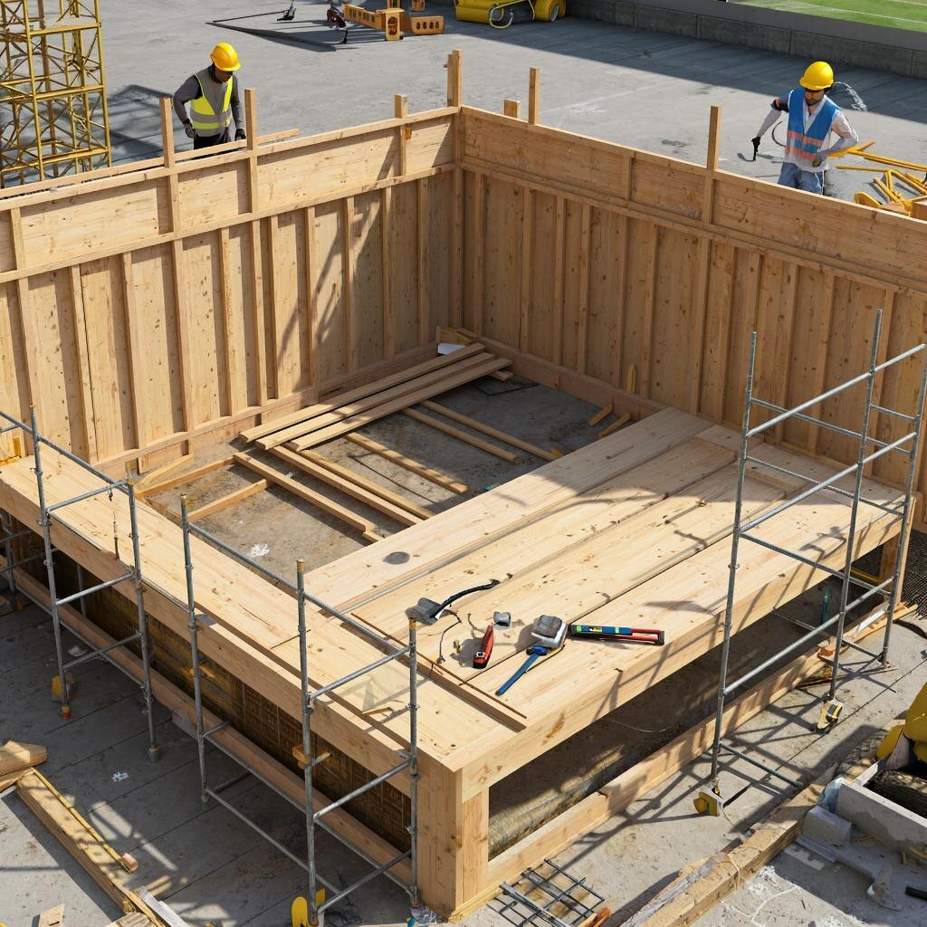 Выбор материала для опалубки тоже играет важную роль. Часто используются деревянные щиты, фанера или специальные металлические системы. Наиболее распространённым вариантом остаются качественные обрезанные доски толщиной около 25 мм. Они обеспечивают гладкую поверхность и легко снимаются после застывания раствора. Поверхность досок рекомендуется обработать специальным составом против влаги и плесени.