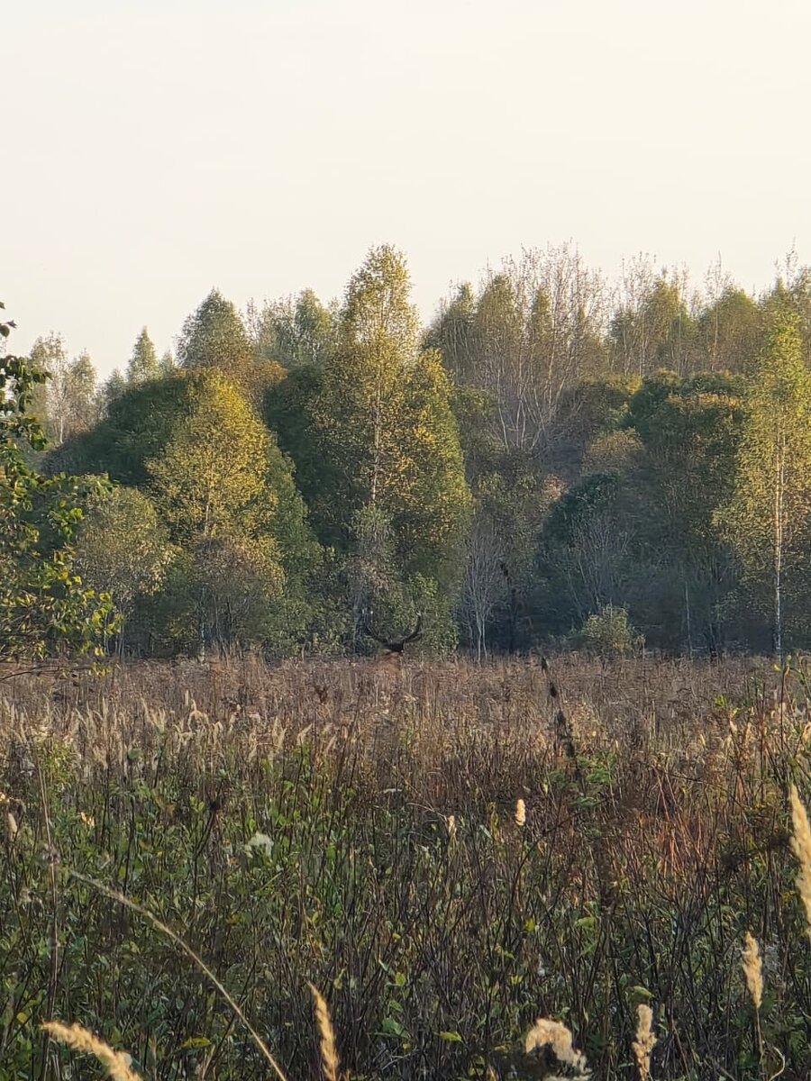 ... Юра привез меня к полю еще не было шести вечера. У меня с собой небольшой рюкзачок, карабин и складной стульчик. Собираюсь: рюкзак за спину, карабин на правое плечо – стульчик на левое. Выдвигаюсь. Иду вверх по склону, вдоль поля, но стараюсь на жнивье не выходить – двигаюсь по кромке по мягкой, уже увядающей траве. Но все равно – очень медленно, смотря под ноги, чтобы ненароком не наступить на какой-нибудь сучок – не шумнуть. Вдруг глаз цепляется за что-то неожиданно красное на земле. Встаю, как вкопанный. Рассматриваю. Яблоко! Откуда оно в поле? Поднимаю голову и вижу, что вдоль опушки привычного владимирского леса растут яблони! Прямо передо мной с ветки свисает такой же яркий, крупный плод. Тянусь к нему левой рукой и замираю! Прямо передо мной какое-то шевеление. Кабаны выходят на поле? Присматриваюсь. Нет. Лежит на опушке, головой к сжатой пшенице олень. Поначалу не разглядев его рога – сливались видимо с ветками, сейчас я могу их рассмотреть. Вот это корона! Но в этот момен