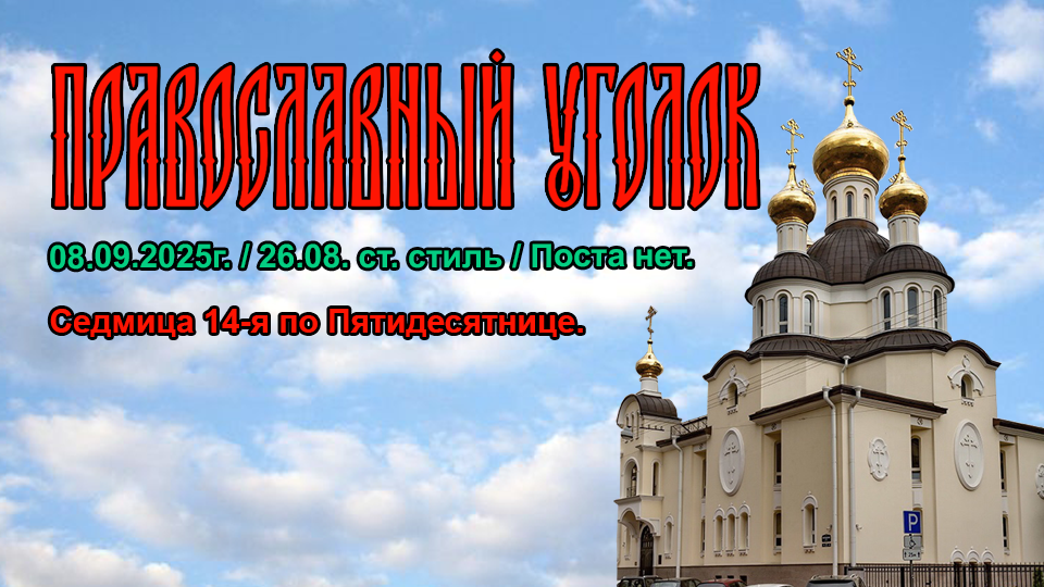 Седмица 14-я по Пятидесятнице. Сретение Владимирской иконы Пресвятой Богородицы. День памяти мучеников Адриана и Наталии Никомидийских. День памяти Блаженной Марии Дивеевской (Фединой). День памяти Преподобномученика Адриа́на Ондру́совского. Собор святых Среднеазиатского митрополичьего округа. Собор святых Орловской митрополии.