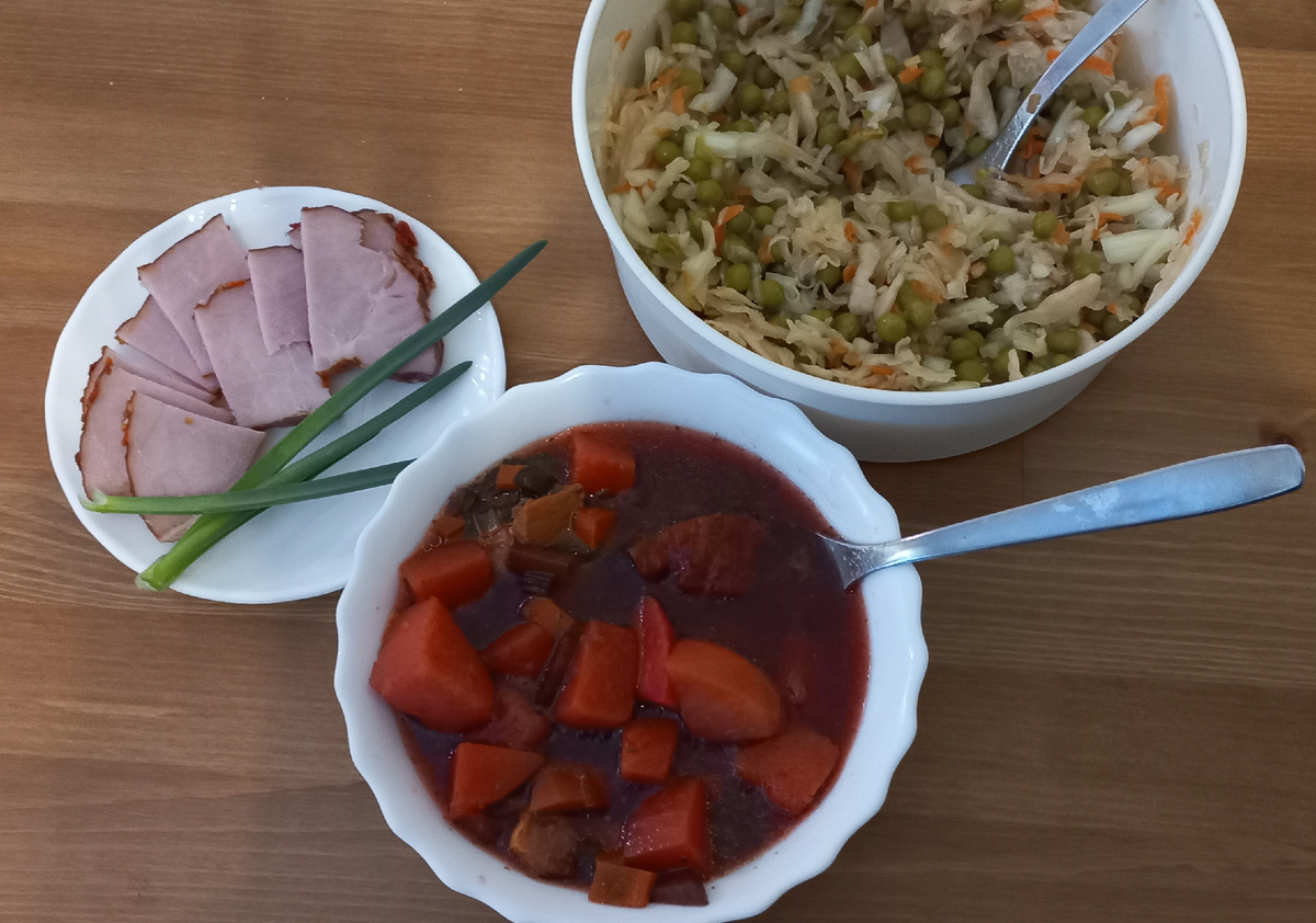 Беспроигрышный вариант. Как я описала выше, для приготовления использую заготовку собственного приготовления, которая получается после летнего прореживания грядок. Наверное, этот борщ можно назвать "летним" или свекольником, или может ботвинником , т.к. в нем нет капусты и есть свекольная ботва🙈