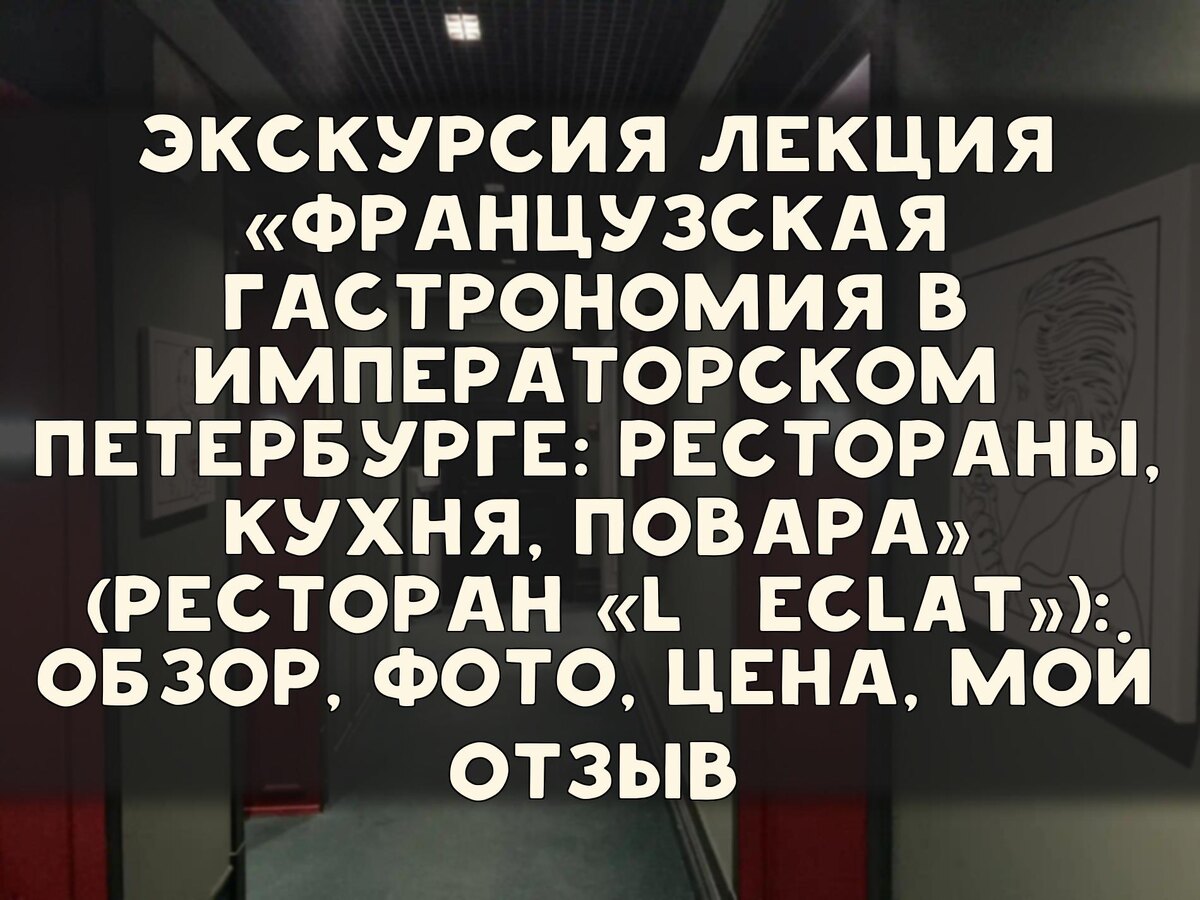 Лекция «Французская гастрономия в императорском Петербурге: рестораны, кухня, повара» (ресторан «L'eclat»): мой обзор, впечатление и фото экскурсии