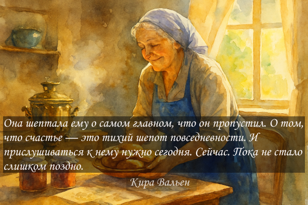 Он так и остался сидеть на полу, прижимая к груди это хрупкое стекло, полное сладкой, горькой, запоздалой любви. И тишина вокруг была уже не гнетущей, а пронзительной. Она шептала ему о самом главном, что он пропустил. О том, что счастье — это тихий шепот повседневности. И прислушиваться к нему нужно сегодня. Сейчас. Пока не стало слишком поздно.