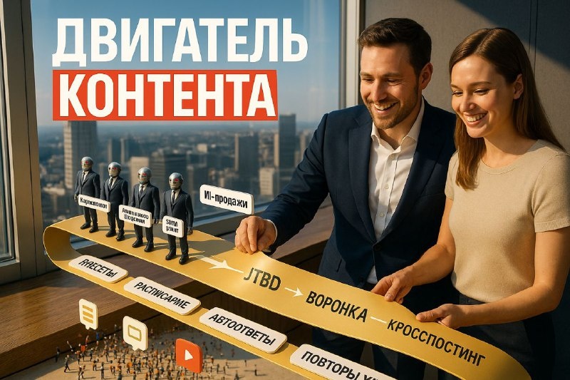 Как я перестал пилить контент на нервяках и включил ИИ как двигатель. Честно, я тоже задолбался постить, придумывать, записывать и создавать. Поэтому собрал контент-машину и пришёл к формату, который отдаёт больше, чем забирает. https://youtu.be/l0_uUaK0NAE?si=pRSZC3et_9ziGzBd как мы в мастер-группе упаковываем ядро бренда, собираем нейросотрудников и ставим продажи на автопилот: — Маркетолог раскладывает ЦА через JTBD, — Архитектор воронок собирает путь клиента, — SMM-агент кросспостит по сеткам, — ИИ-продавец дожимает входящие, ....а я лишь подкидываю смысл — и хиты уходят на ПОВТОР. Что получите от запуска по нашей схеме: — вместо хаоса — расписание и пресеты под тексты/картинки/видео; — вместо «ещё один созвон» — автоответы и догоняющие рассылки; — вместо угадайки — темы со спросом и понятные метрики. В видео — как мастер-группа ускоряет запуск, где брать пресеты, как мы настраиваем онбординг и метрики так, чтобы система вела контент и продажи без вашего выгорания. Жмите ▶️, смотри