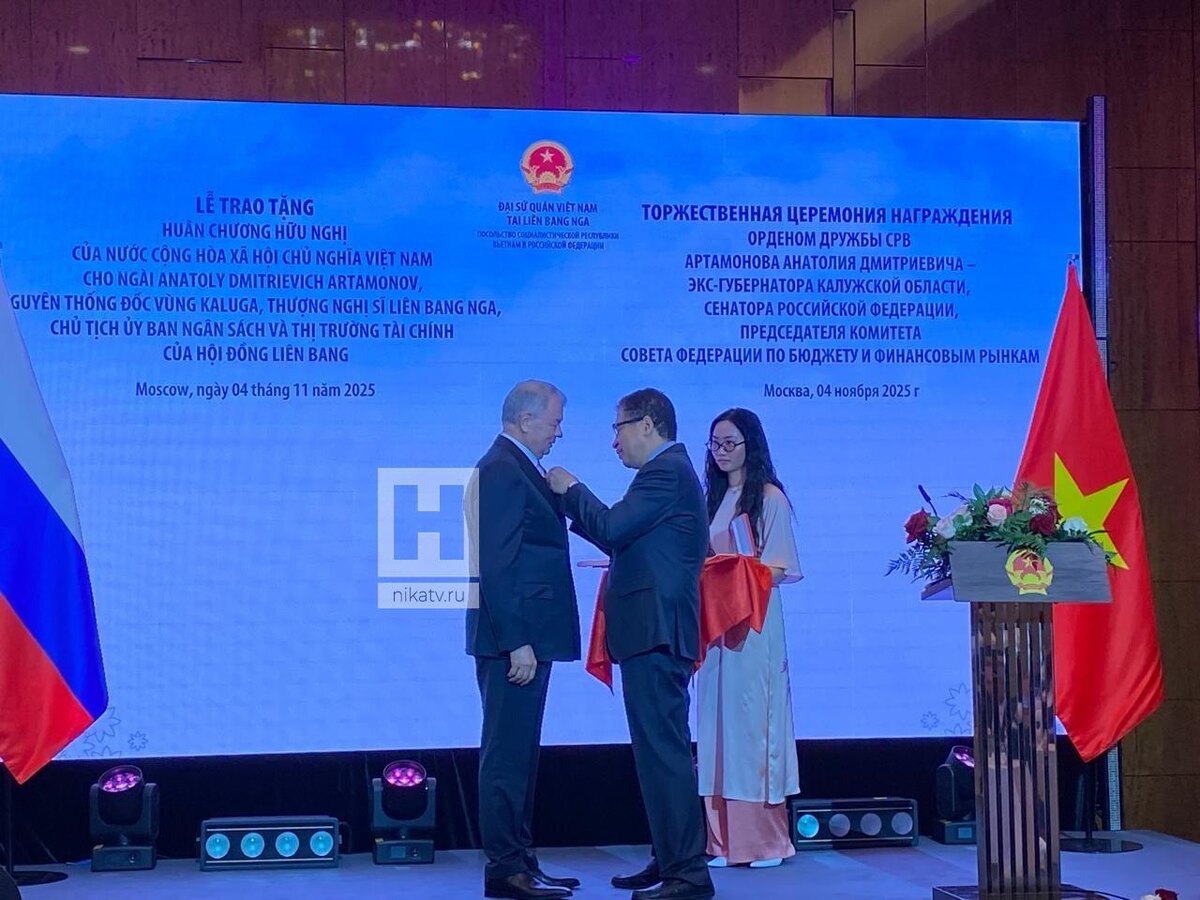 ⚡️ Анатолий Артамонов получил высокую награду Вьетнама — Орден Дружбы Председатель Комитета Совета Федерации по бюджету и финансовым рынкам получил награду за активный вклад в укрепление дружественных отношений и сотрудничества между Россией и Вьетнамом. 🔴 Решение о награждении принял Президент Социалистической Республики Вьетнама, а вручил награду Чрезвычайный Полномочный Посол СРВ в России. 📺 Подписывайся на наш канал в Максе