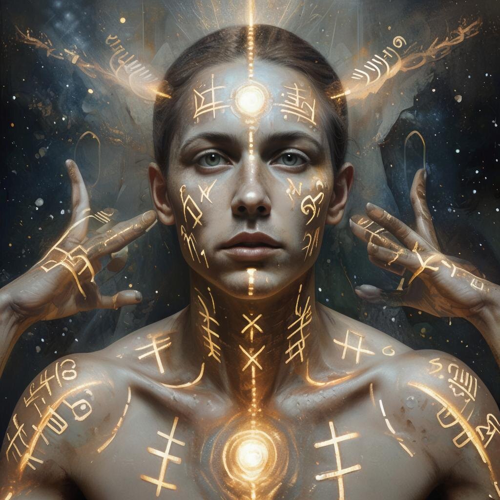 Самым мощным переживанием стало то, как эти знаки появлялись. Это не было пассивным проявлением. Мои собственные руки, но движимые не моей волей, выводили на коже символы. Я была и холстом, и инструментом в руках духа.