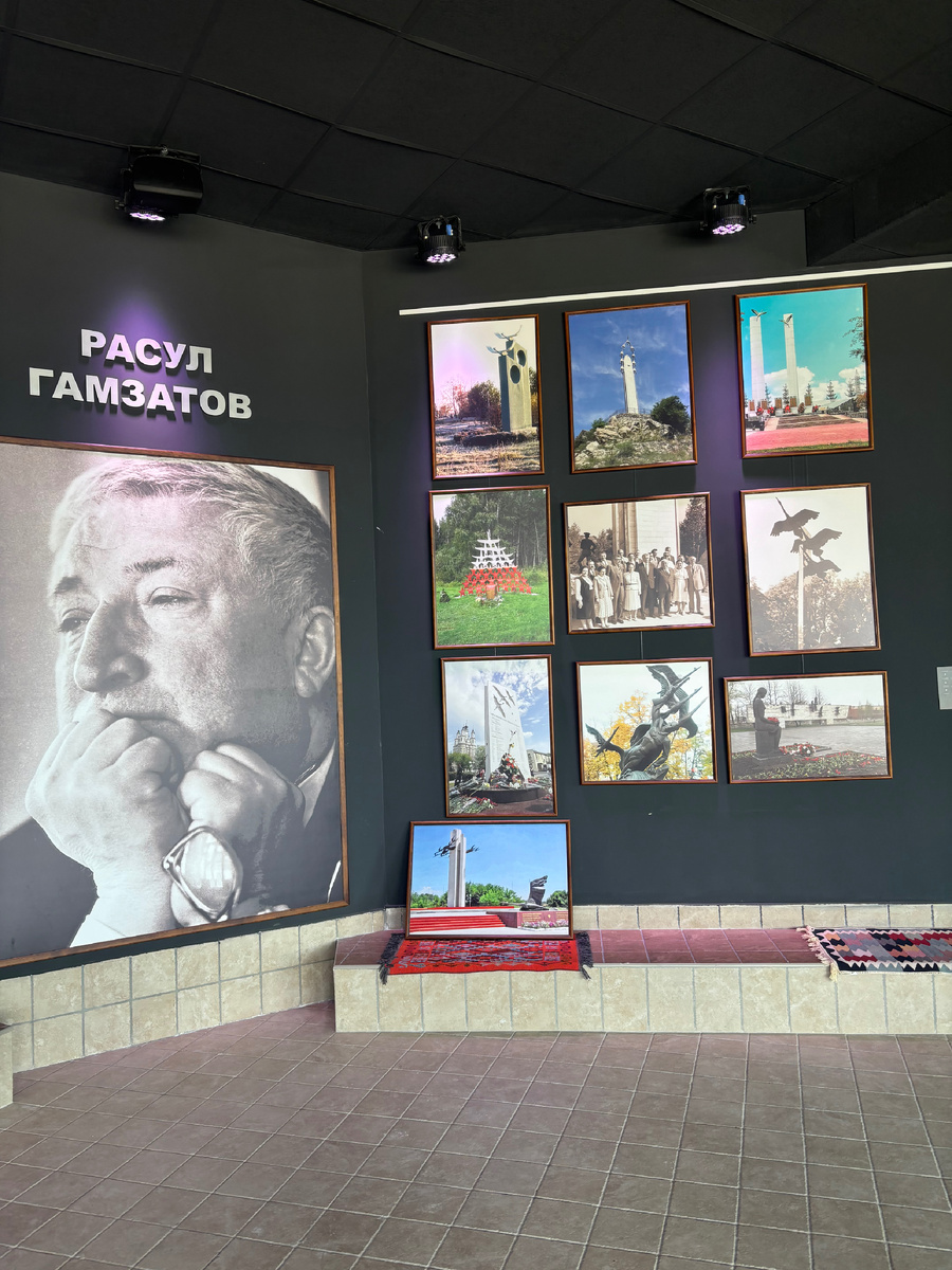 Вообще, экспонаты-фотографии, предметы, связанные с жизнью трех авторов песни «Журавли», расположены по кругу, потому что само здание имеет форму цилиндра.