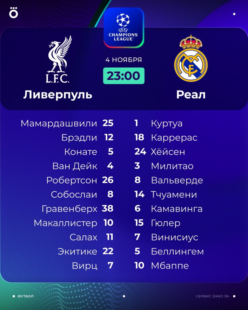 Стартовые составы «Ливерпуля» и «Реала» — «Энфилд» готовится к топовому футболу 🔥